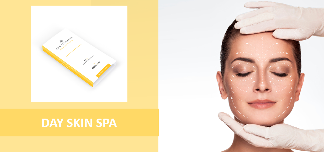 Um suplemento alimentar com uma combinação altamente eficaz de extrato de goiaba e amla, vitaminas, zinco e selénio. Proteja a sua pele desde o interior contra os desafios do dia-a-dia. Stress, impactos ambientais negativos, raios UV e radicais livres contribuem para a redução da capacidade natural da pele de armazenar água, o que resulta no seu envelhecimento prematuro. DAY SKIN SPA é um produto criado com essências naturais preciosas, vitaminas e minerais que irão tornar a sua pele macia, fresca, suave e flexível. Day Skin Spa é uma fonte de beleza que vem de dentro. Contém um rico cocktail de ingredientes valiosos. A vitamina C contribui para a normal produção de colagénio. para assegurar o bom funcionamento da pele, a Vitamina E, o zinco e o selénio ajudam a proteger as células contra os radicais livres (stress oxidativo).