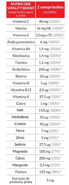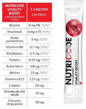 Nutricode Vitality Boost é uma composição de ingredientes e uma rica fonte de vitaminas e minerais que vão dar um novo ritmo à sua vida, melhorando o fluxo de energia física e mental durante o dia permitindo um melhor descanso à noite. A composição cuidadosamente selecionada do suplemento aumenta o metabolismo. Ajuda a regularizar o peso.